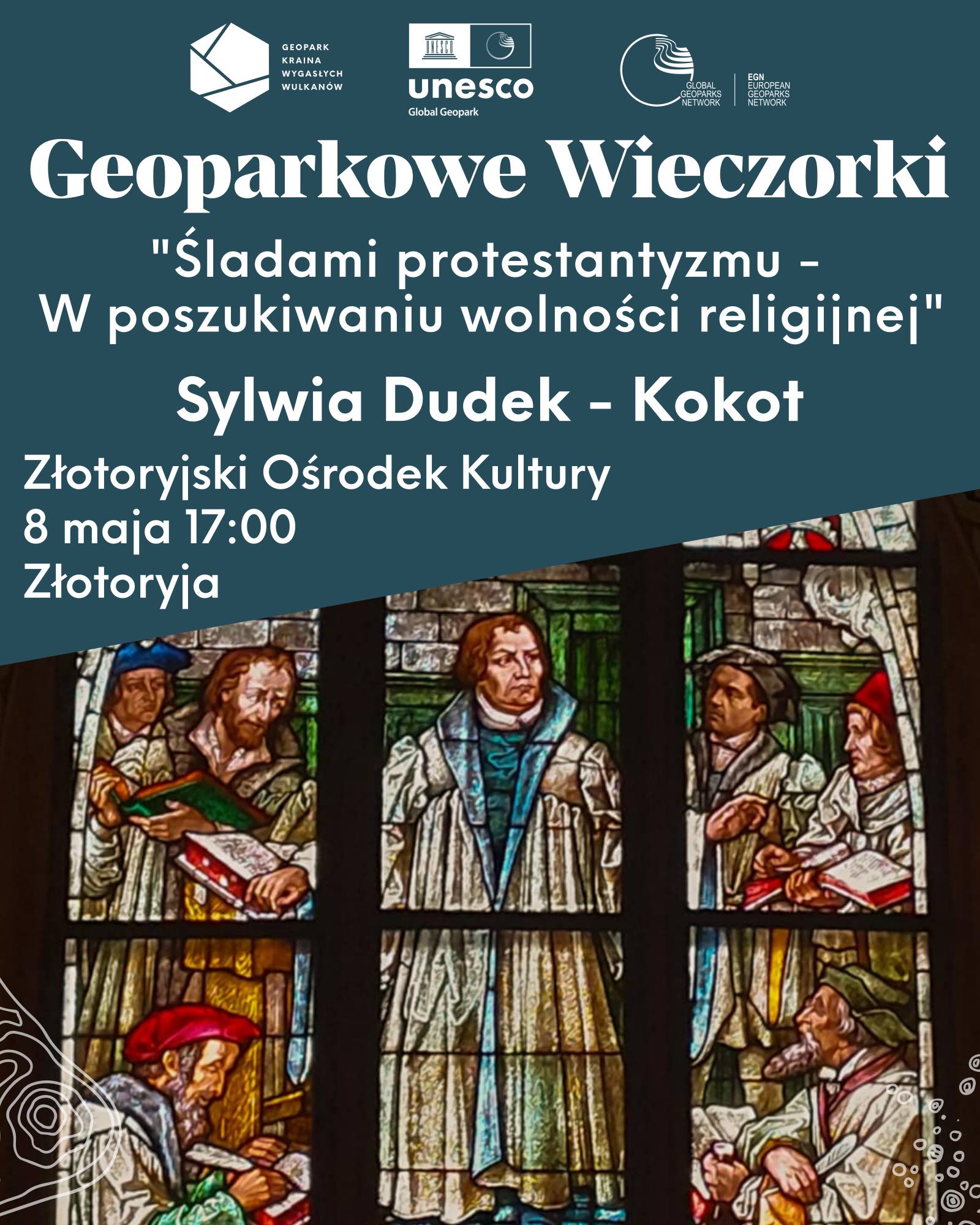 Sylwia Dudek-Kokot, przewodniczka turystyczna po Złotoryi, opowie jutro w Złotoryjskim Ośrodku Kultury o śladach protestantyzmu w Krainie Wygasłych Wulkanów. Wykład, okraszony licznymi fotografiami, odbędzie się w ramach cyklu Geoparkowe Wieczorki. Wstęp jest bezpłatny.