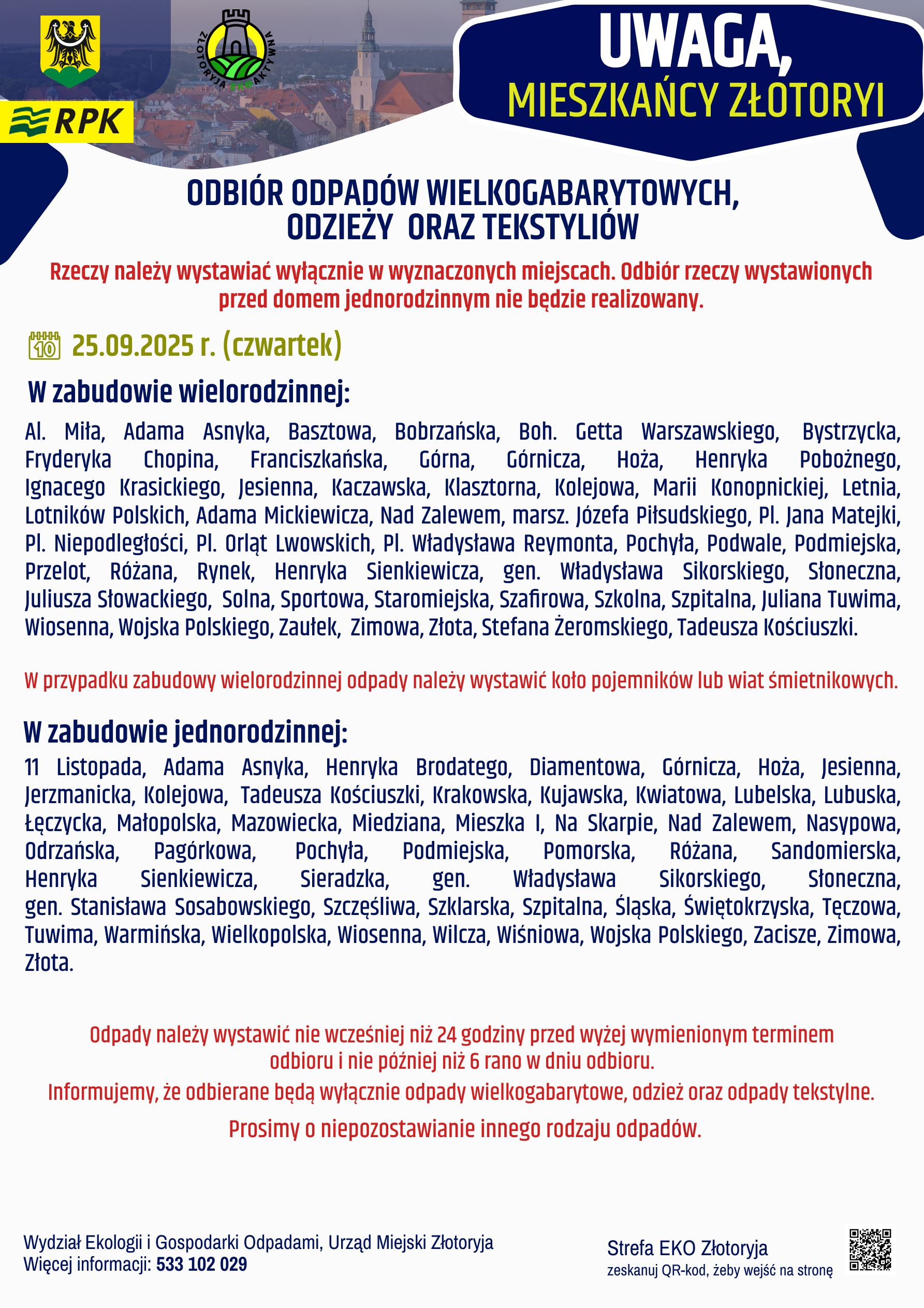 Poniżej publikujemy wykaz ulic z datami zbiórki.