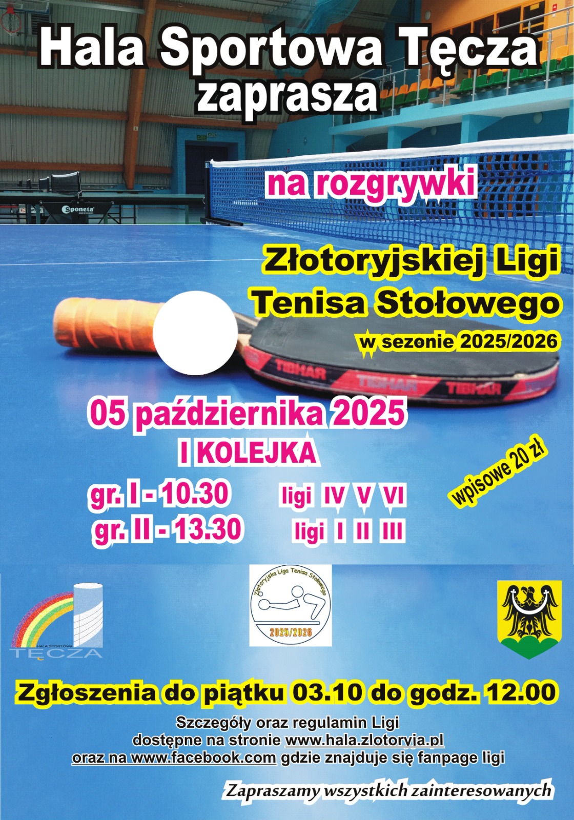 Równo za 10 dni rozpoczną się zmagania zawodników grających w Złotoryjskiej Lidze Tenisa Stołowego.
