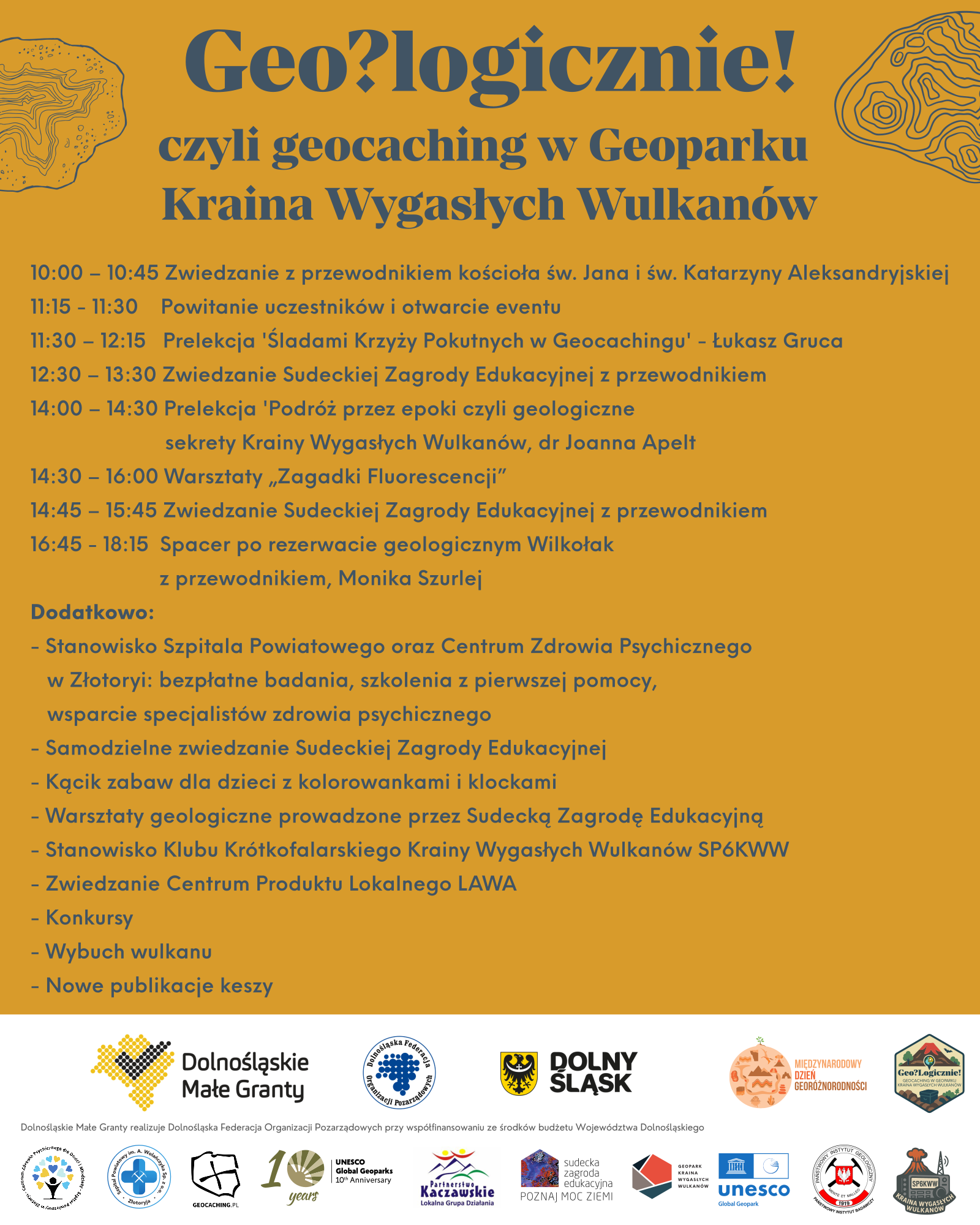 Celem spotkania jest promocja regionu Krainy Wygasłych Wulkanów, popularyzacja turystyki i geocachingu, a także świętowania Dnia Georóżnorodności.