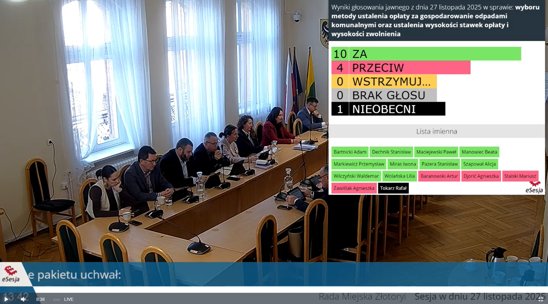 Za zmianą stawek głosowało na dzisiejszej sesji 10 radnych: Adam Bartnicki, Stanisław Dechnik, Paweł Maciejewski, Beata Manowiec, Przemysław Markiewicz, Iwona Miras, Stanisław Pazera, Alicja Szapował, Waldemar Wilczyński, Lilia Wolańska. Przeciw było 4: Artur Baranowski, Agnieszka Djorić, Mariusz Stalski i Agnieszka Zawiślak.