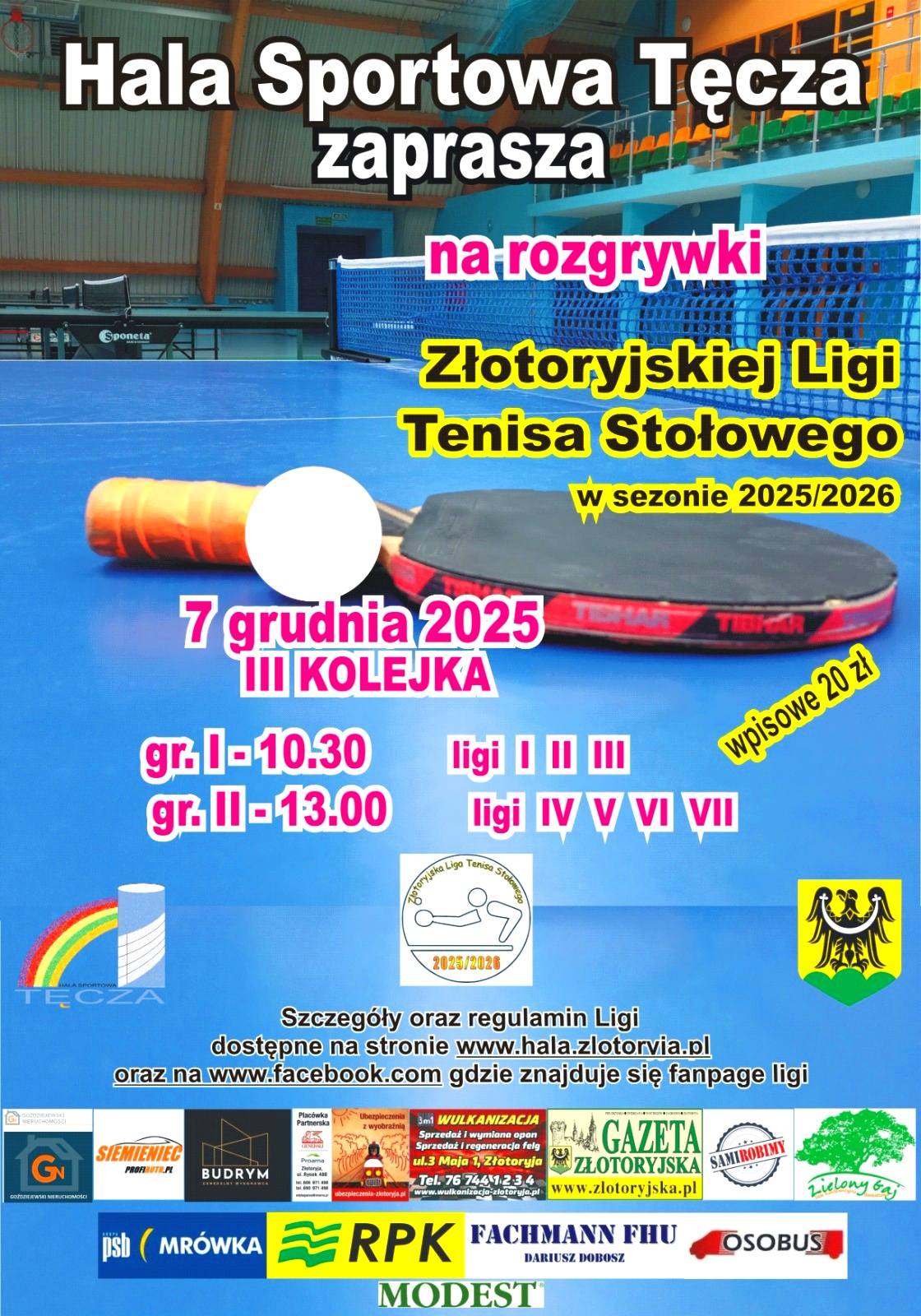 Zapraszamy do kibicowania uczestnikom 3. rundy Złotoryjskiej Ligi Tenisa Stołowego.