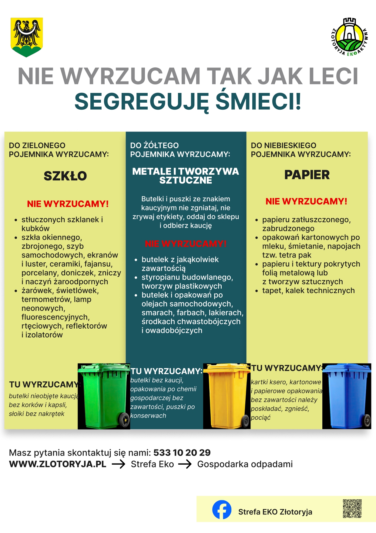 W przypadku pytań lub wątpliwości należy kontaktować się z Wydziałem Ekologii i Gospodarki Odpadami Urzędu Miejskiego w Złotoryi, tel. 76 87 79 186, 533 10 20 29, e-mail: szczepaniak_magdalena@zlotoryja.pl lub dlubis_bernadetta@zlotoryja.pl