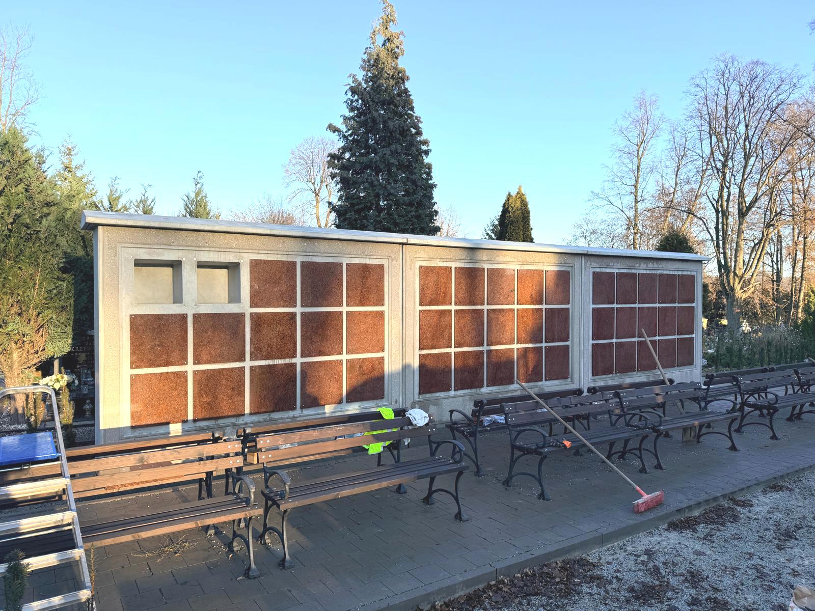 Kolumbarium to tylko jedna z ostatnich zmian na cmentarzu komunalnym. Kilkanaście dni temu zakończyły się prace przy naprawie muru w pobliżu kaplicy, odgradzającego nekropolię od zmodernizowanej niedawno ul. Cmentarnej. Kosztowały 104 tys. 550 zł.