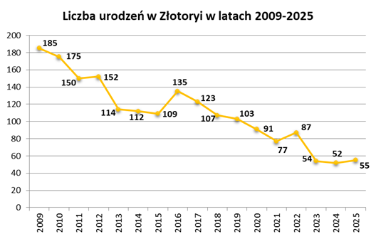 W dużej mierze za te katastrofalne statystyki winę ponosi nieustannie spadająca liczba urodzeń. Jeszcze na początku lat 80. XX w. w naszym kraju rodziło się ponad 700 tys. dzieci rocznie. W 2024 było ich już tylko 252 tys., a w tym będzie to prawdopodobnie poniżej 240 tys. Te depopulacyjne statystyki widać wyraźnie także w Złotoryi, gdzie obecnie rodzi się trzykrotnie mniej dzieci niż jeszcze 15 lat temu.