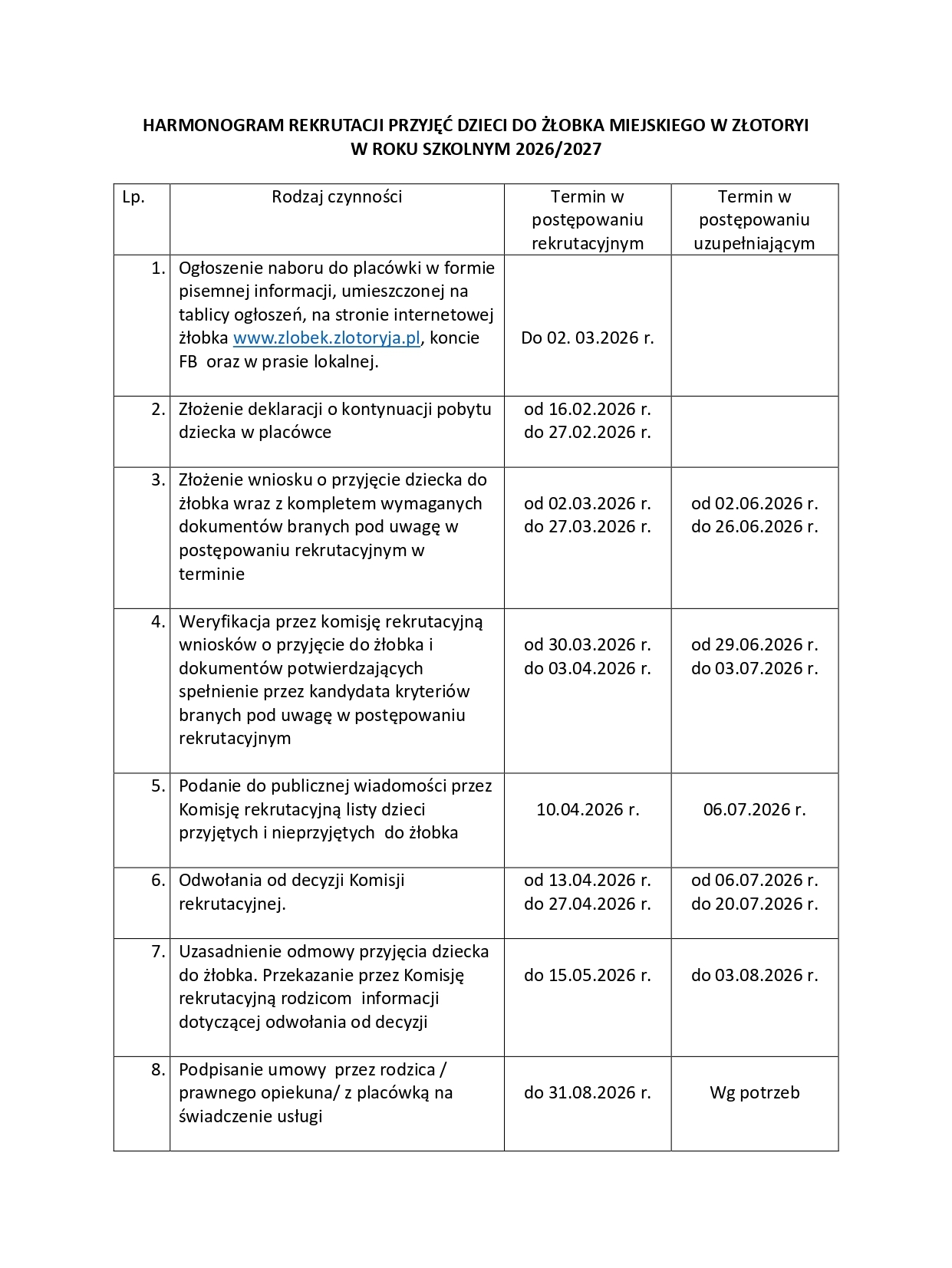 Więcej informacji o rekrutacji można uzyskać bezpośrednio w szkołach, przedszkolach, żłobku, a także na stronach internetowych tychże placówek oraz na portalu miejskim w zakładce ,,REKRUTACJA 2026/2027”.