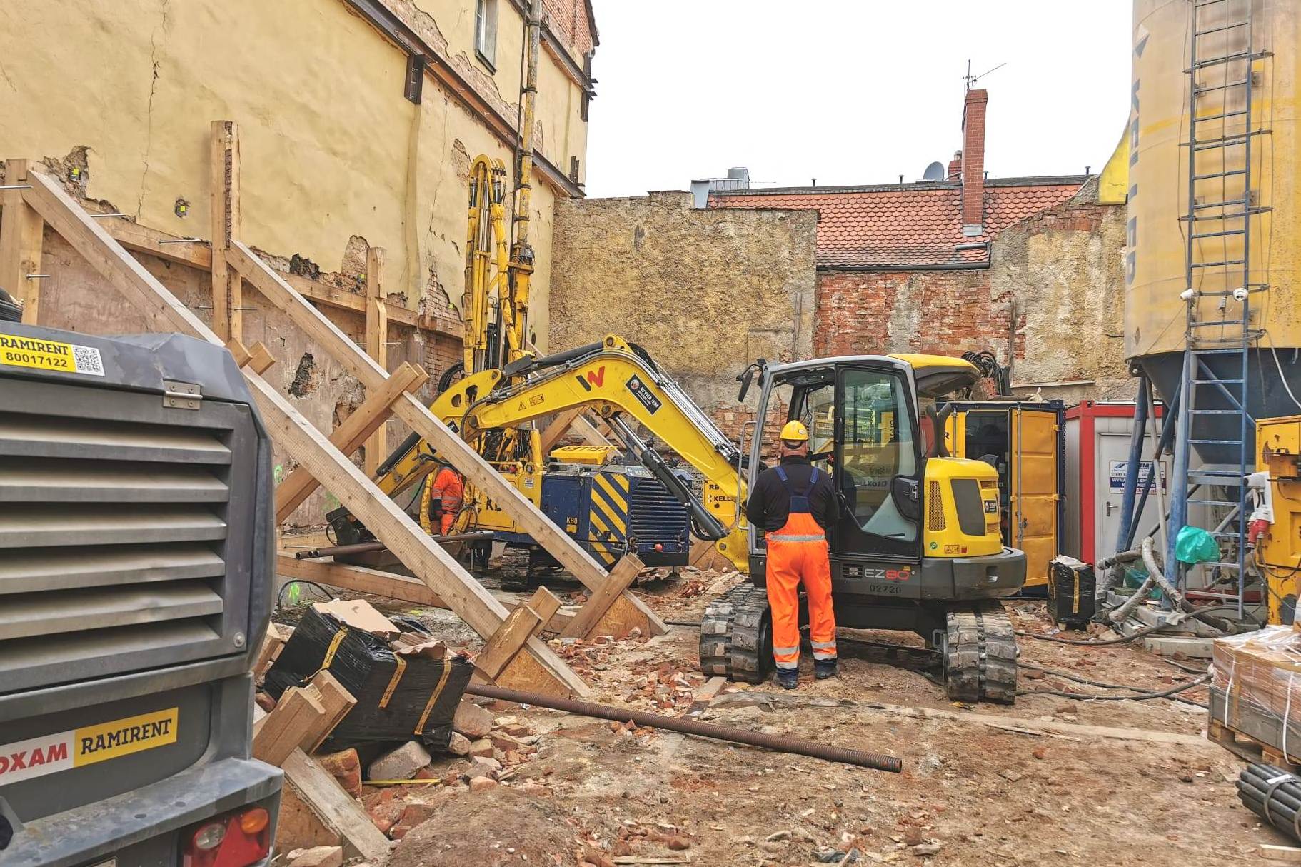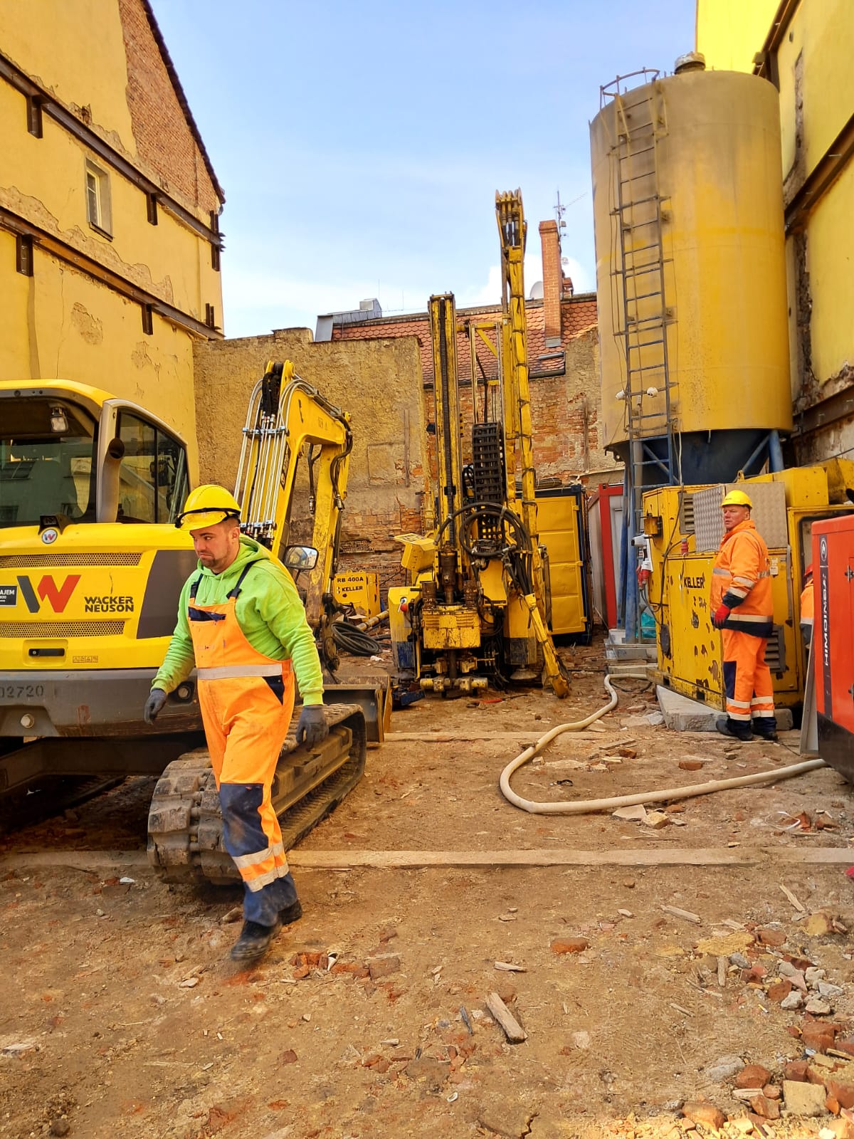 Dziś natomiast rozpoczęło się palowanie terenu pod płytę fundamentową. Do Złotoryi sprowadzono firmę specjalizującą się w tego rodzaju pracach, która wykona ponad 30 nawiertów o głębokości co najmniej 6 m, Umieszczone w nich zostaną mikropale ze stali i betonu, które będą one zlokalizowane głównie od strony południowej (przy kamienicy nr 6).