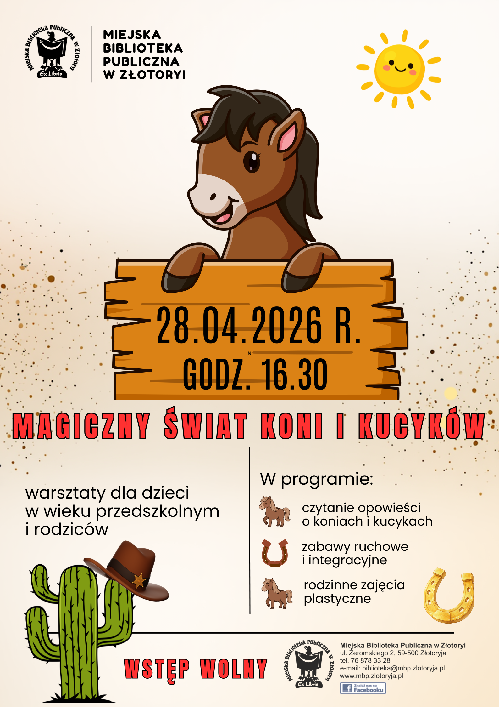 – Spotkanie, przygotowane z okazji Ogólnopolskiego Dnia Konia, będzie pełne atrakcji rozwijających wyobraźnię oraz kreatywność dzieci. W programie przewidziano wspólne czytanie, inspirujące zabawy plastyczne, a także prezentację książek poświęconych koniom i kucykom. Warsztaty stanowią doskonałą okazję do twórczego spędzenia czasu w rodzinnej atmosferze oraz bliższego poznania fascynującego świata tych niezwykłych zwierząt – zachęcają panie z MBP.