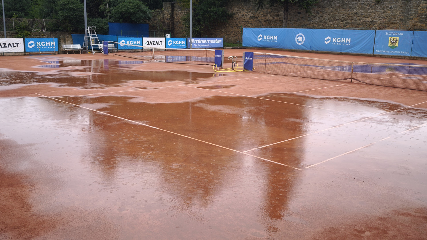 – Zdążyliśmy rozegrać rano tylko dwa gemy, później zaczęło mocno padać i woda przykryła korty, zdecydowaliśmy się więc odesłać zawodników do hotelu i przełożyć zaplanowane na dziś mecze – usłyszeliśmy od komandora turnieju Adama Zdaniuka. Niewykluczone, że jeszcze w sobotnie popołudnie uda się rozegrać część spotkań, intensywnie z pewnością zapowiadają się na kortach przy ul. Marii Konopnickiej niedziela i poniedziałek.