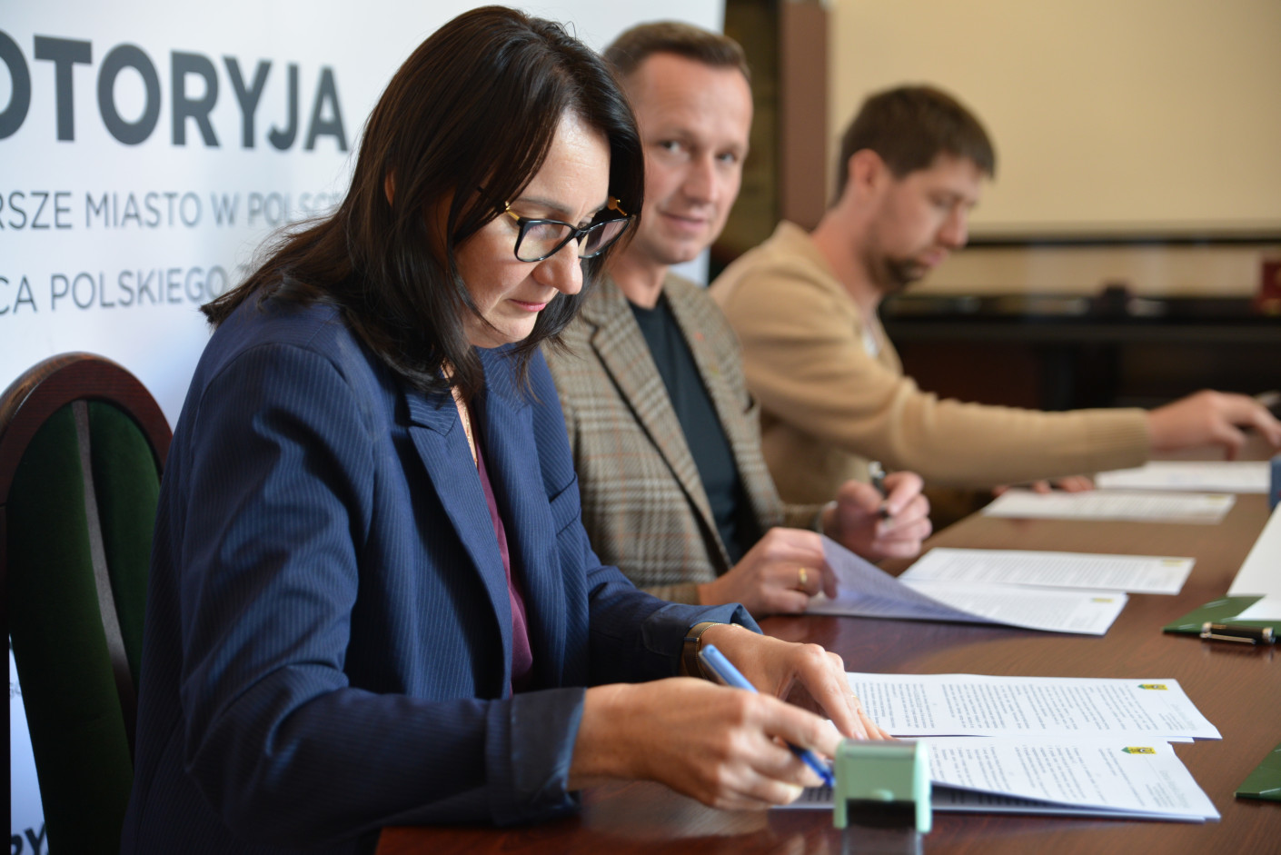 Umowę w imieniu PTB podpisał Mateusz Chamski, swój podpis złożyła także skarbniczka miasta Agnieszka Pogońska. Wykonawca na przebudowanie Tęczowej ma 6 tygodni.