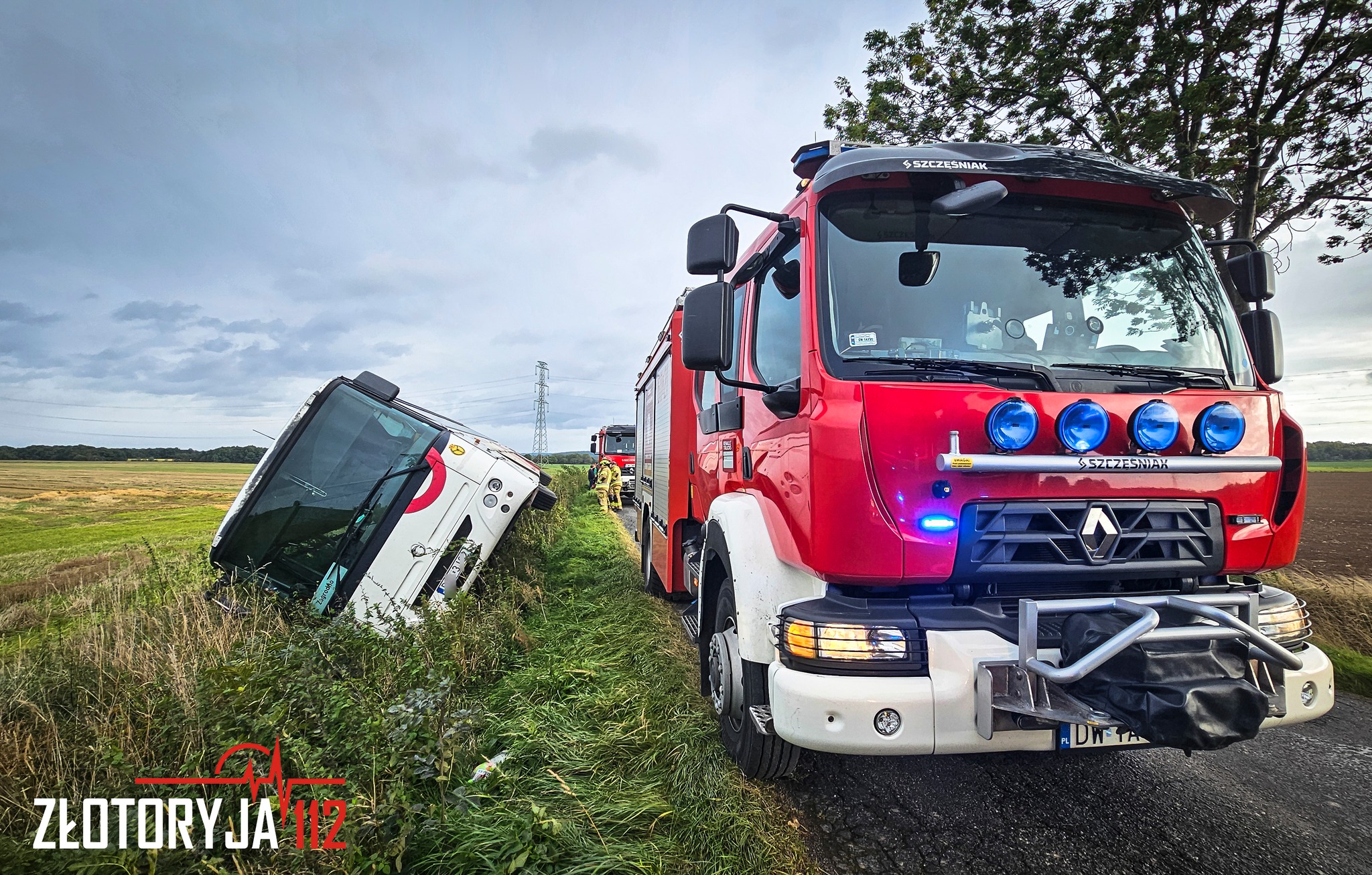 Przybyli na miejsce strażacy (JRG Złotoryja, OSP Olszanica, OSP Zagrodno) zastali pojazd w rowie.