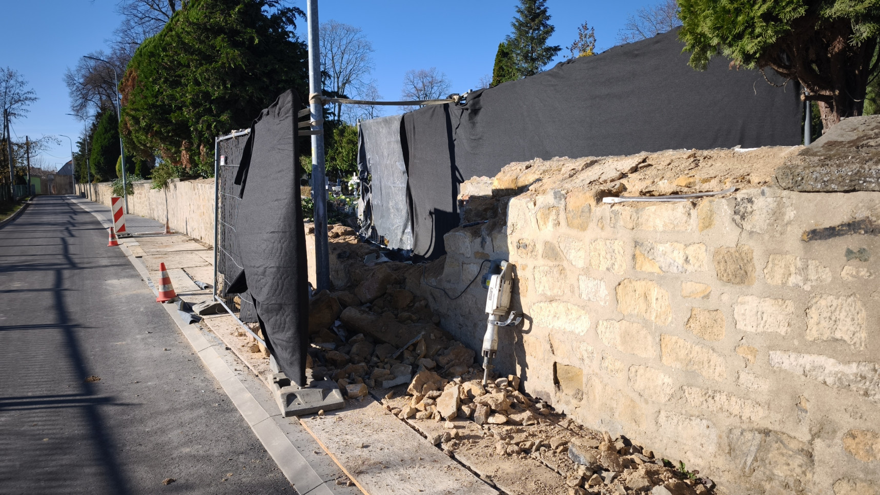 W magistracie doszli do wniosku, że z naprawą nie ma dłużej co czekać, zwłaszcza że sfatygowany mur nie przystawał do nowego oblicza biegnącej obok ul. Cmentarnej (w tym miejscu trzeba dodać, że podczas przebudowy drogi zostały uzupełnione piaskowcowe czapy w sąsiednich fragmentach kamiennego ogrodzenia). W budżecie miasta znalazły się środki na remont.