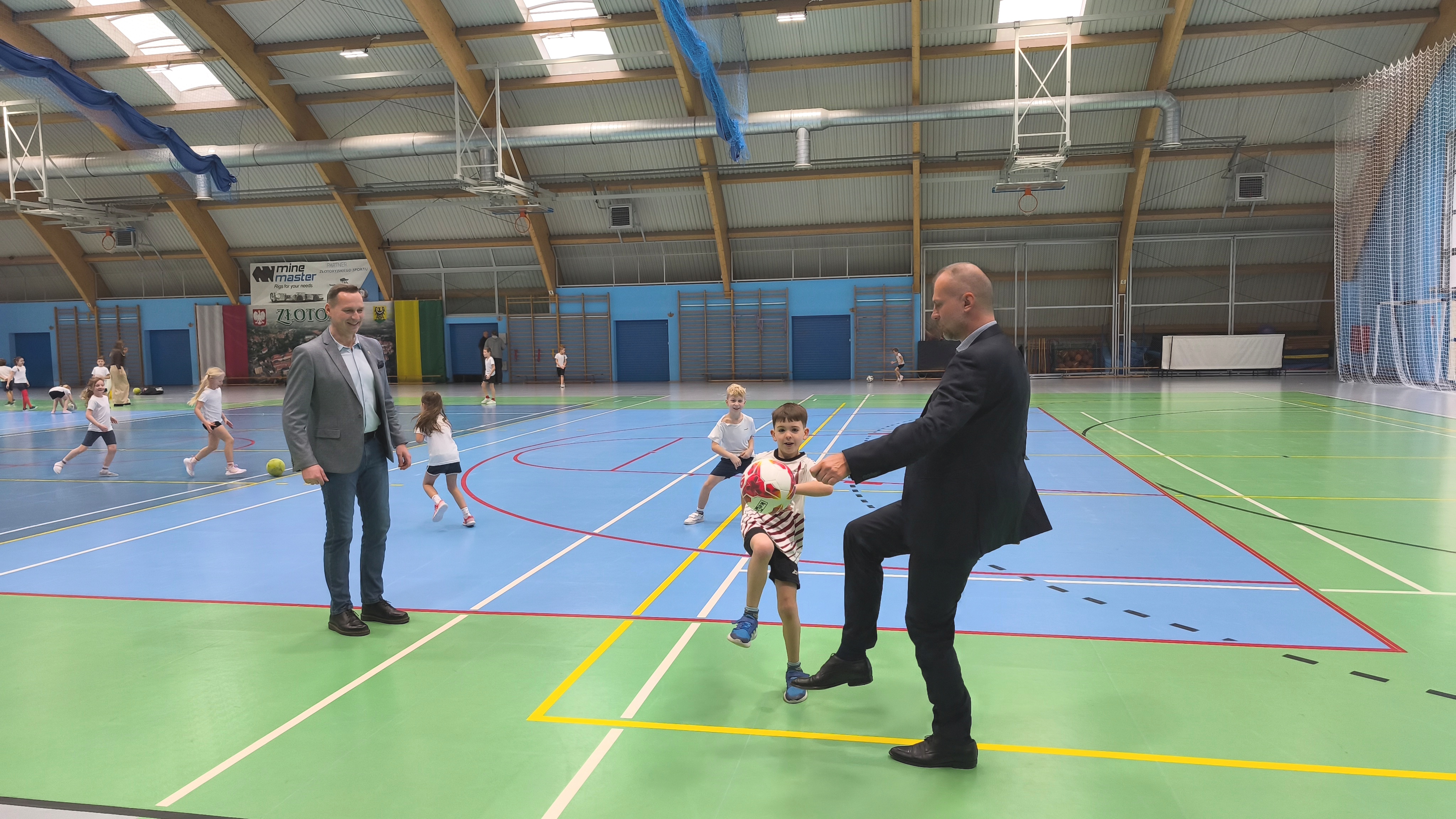 Rabczenko podczas wizyty w złotoryjskiej hali trafił akurat na zajęcia piłkarskie dla najmłodszych uczniów Szkoły Podstawowej nr 3, które w ramach programu „Sprawny Dolnoślązaczek” (współfinansowanego zresztą przez samorząd województwa) prowadziła Alicja Szapował. Razem z burmistrzem kopnął nawet parę razy piłkę z dzieciakami.