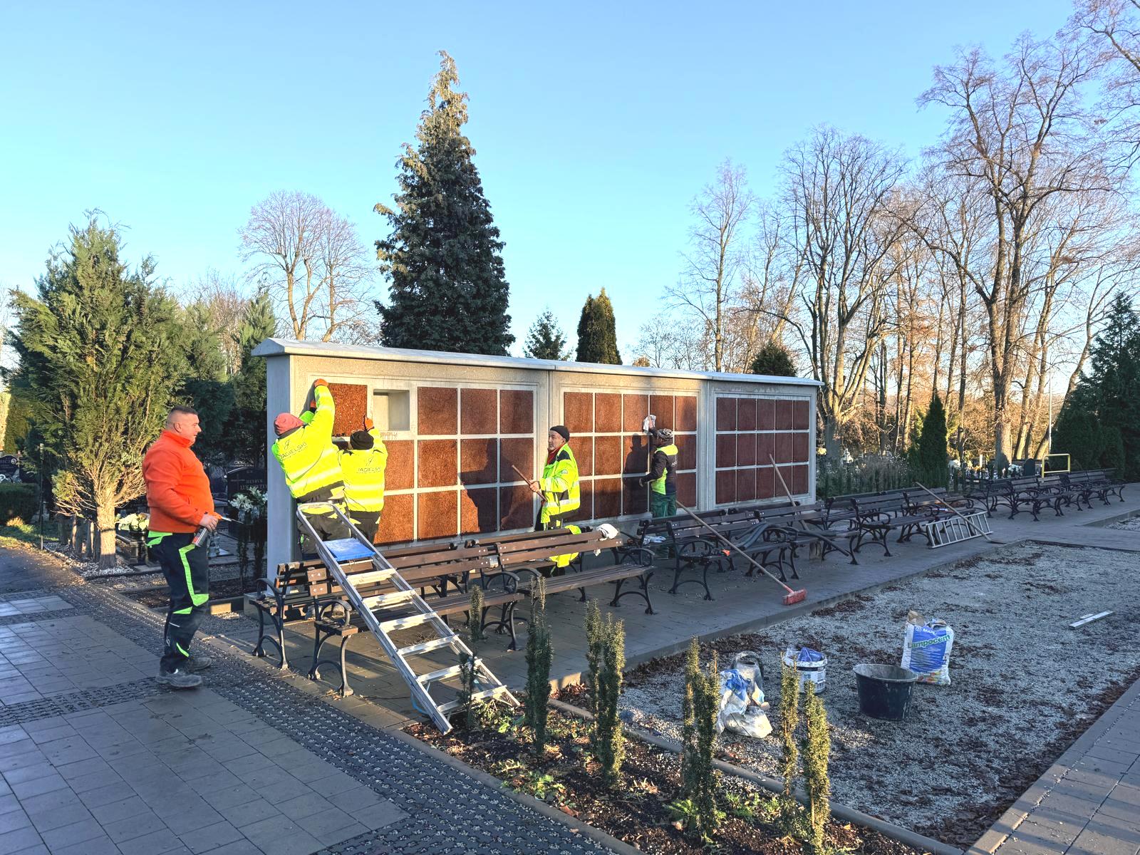 Kolumbarium to tylko jedna z ostatnich zmian na cmentarzu komunalnym. Kilkanaście dni temu zakończyły się prace przy naprawie muru w pobliżu kaplicy, odgradzającego nekropolię od zmodernizowanej niedawno ul. Cmentarnej. Kosztowały 104 tys. 550 zł.