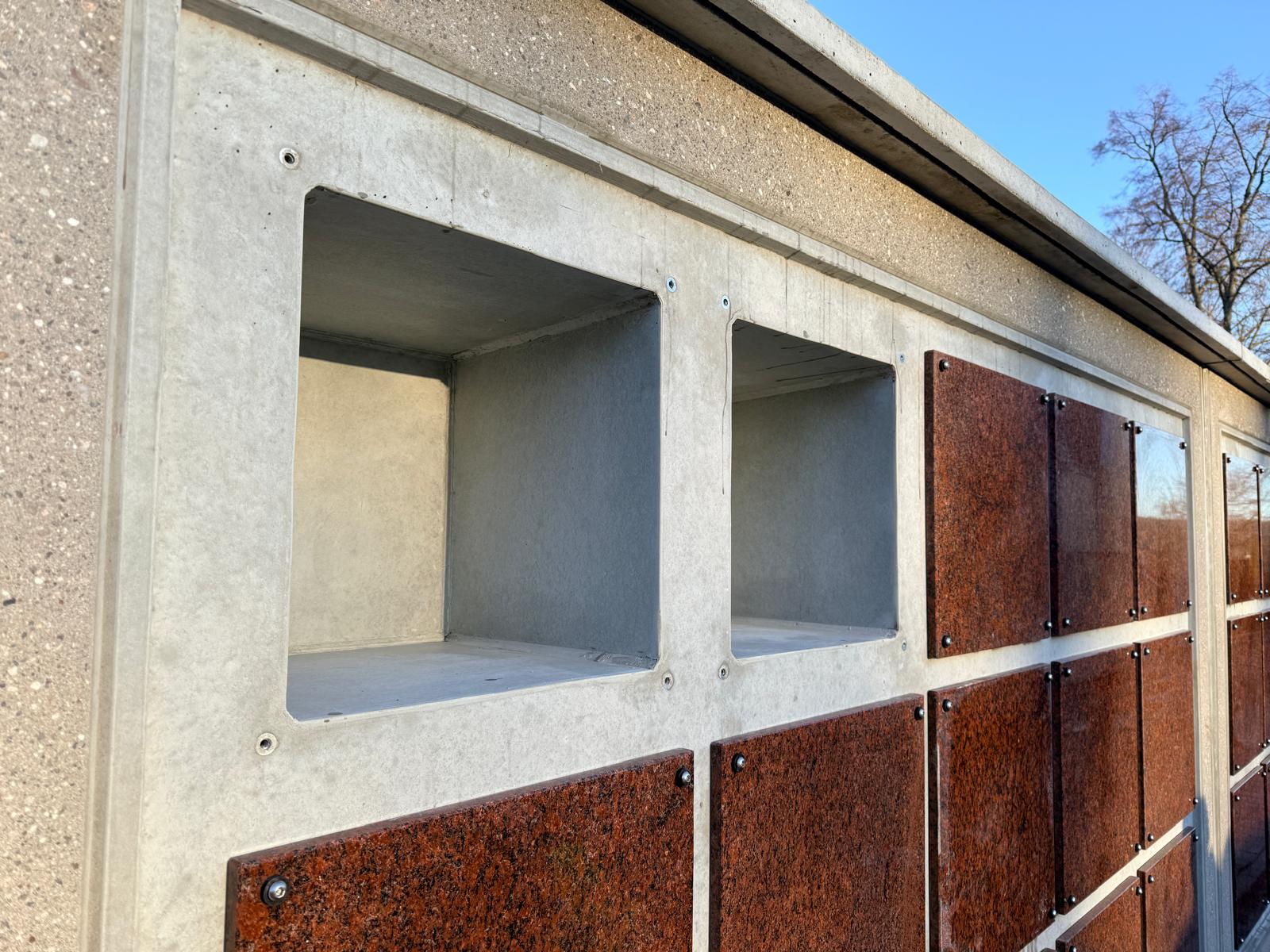 Zbiorowy grobowiec, zwany też ścianą pamięci, stanął pomiędzy krzyżem i kaplicą – na fundamentach, które wybudowano tutaj rok temu podczas modernizacji centralnego placu złotoryjskiej nekropolii. Miasto zleciło ustawienie trzech betonowych elementów. W każdym z nich znajduje się 15 wnęk na urny z prochami zmarłych, które będą zakryte ozdobnymi płytami granitowymi.