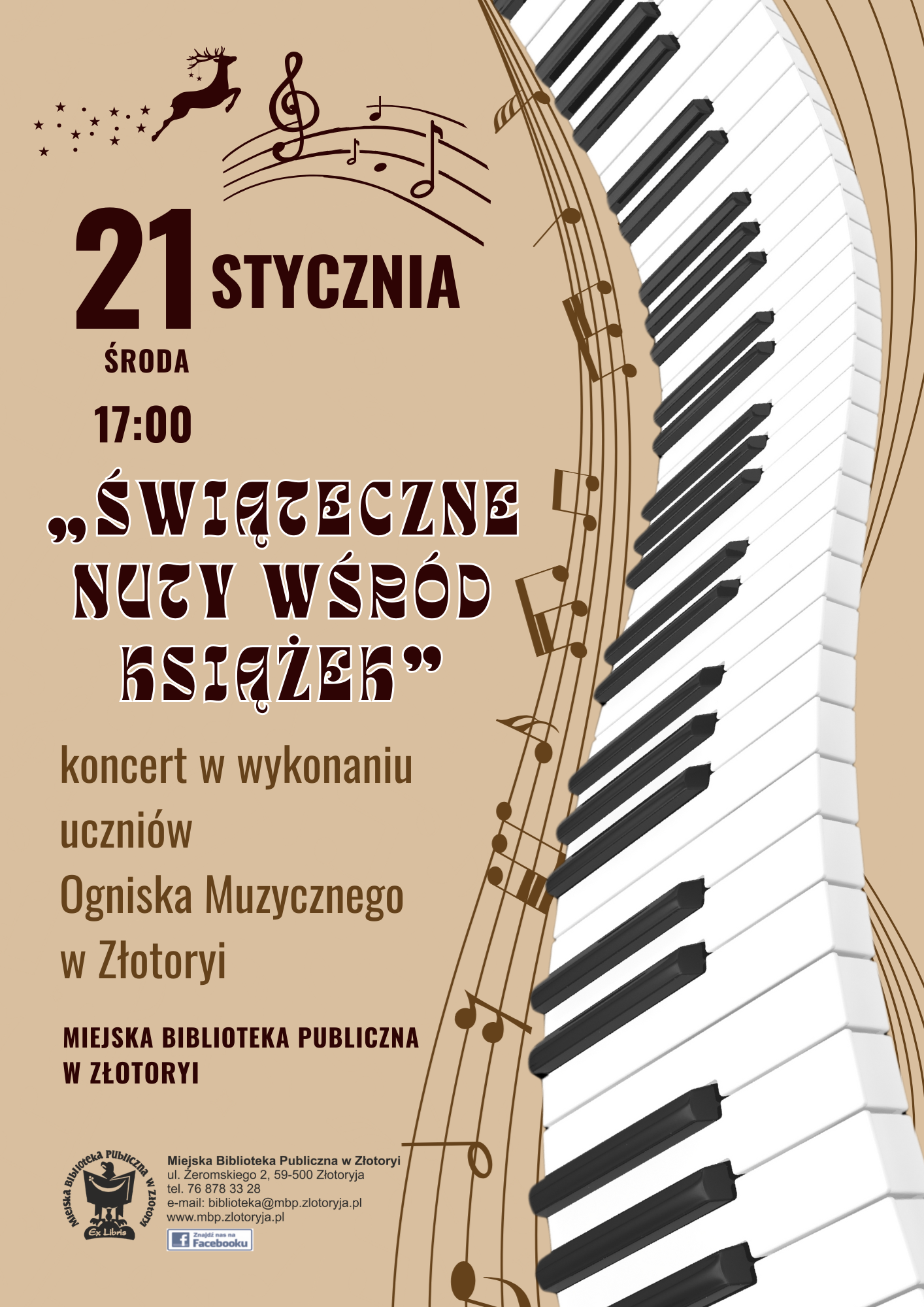 – W programie nie zabraknie znanych melodii oraz utworów, które pięknie wpiszą się w przestrzeń biblioteki, łącząc świat muzyki i literatury. Koncert będzie doskonałą okazją, by w kameralnej atmosferze posłuchać młodych wykonawców, docenić ich talent i zaangażowanie, a także wspólnie spędzić czas przy dźwiękach pianina. To propozycja zarówno dla miłośników muzyki, jak i dla rodzin z dziećmi oraz wszystkich, którzy chcą na chwilę zwolnić i poczuć magię zimowego popołudnia. Wstęp wolny – mówią organizatorzy.