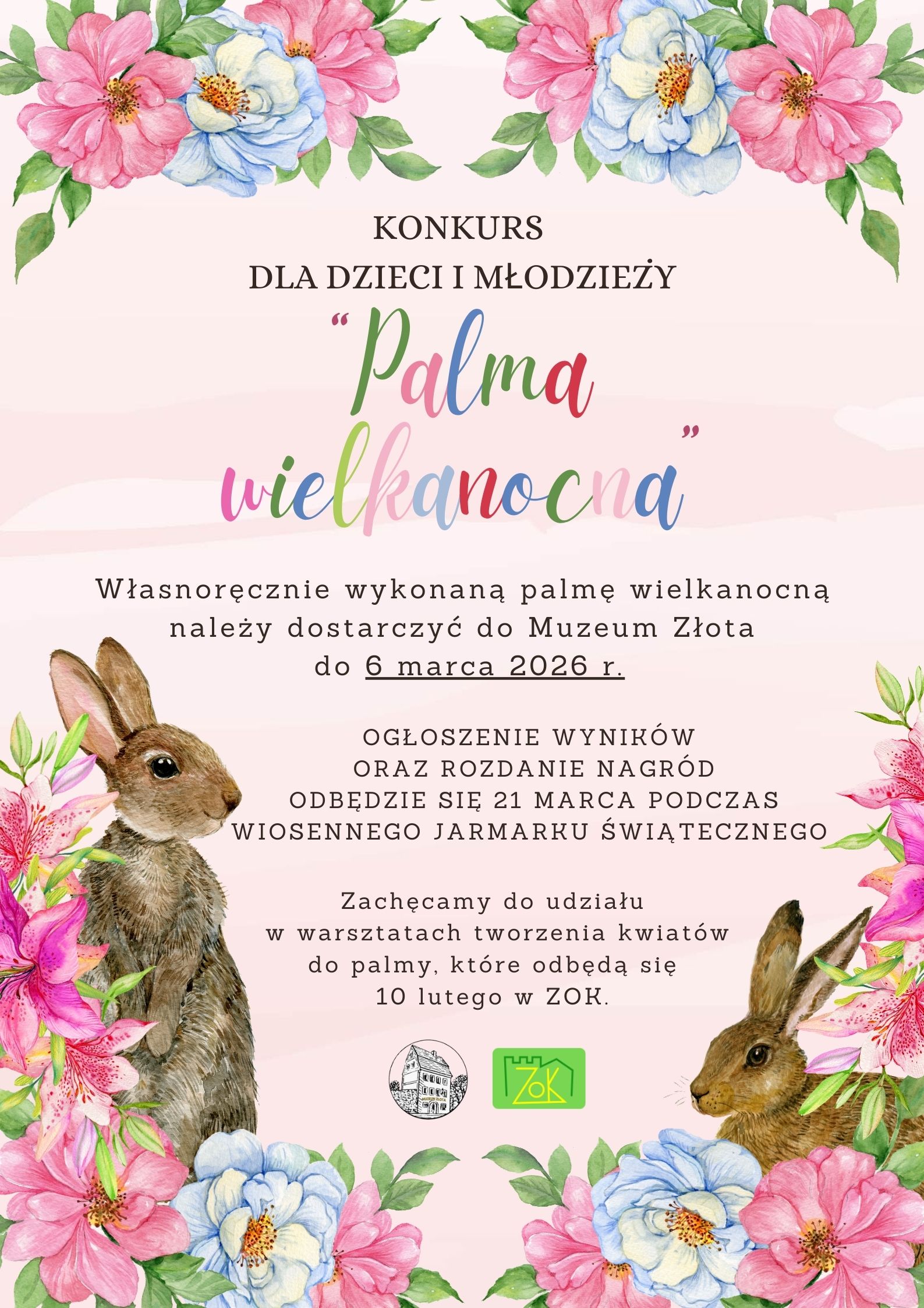 Aby wziąć udział wystarczy własnoręcznie wykonać palmę wielkanocną (z dowolnych materiałów), dołączyć do dzieła swoje dane (imię, nazwisko, wiek, dane kontaktowe) i dostarczyć je do Muzeum Złota (ul. Zaułek 2) do 6 marca 2026 r.