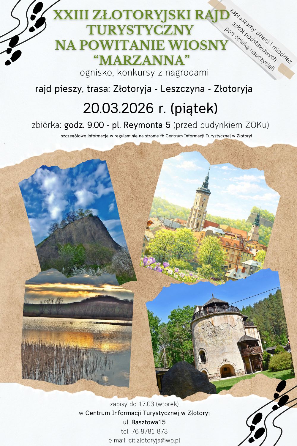 Zapraszamy do udziału w 23. edycji Złotoryjskiego Rajdu Turystycznego Na Powitanie Wiosny „Marzanna”.