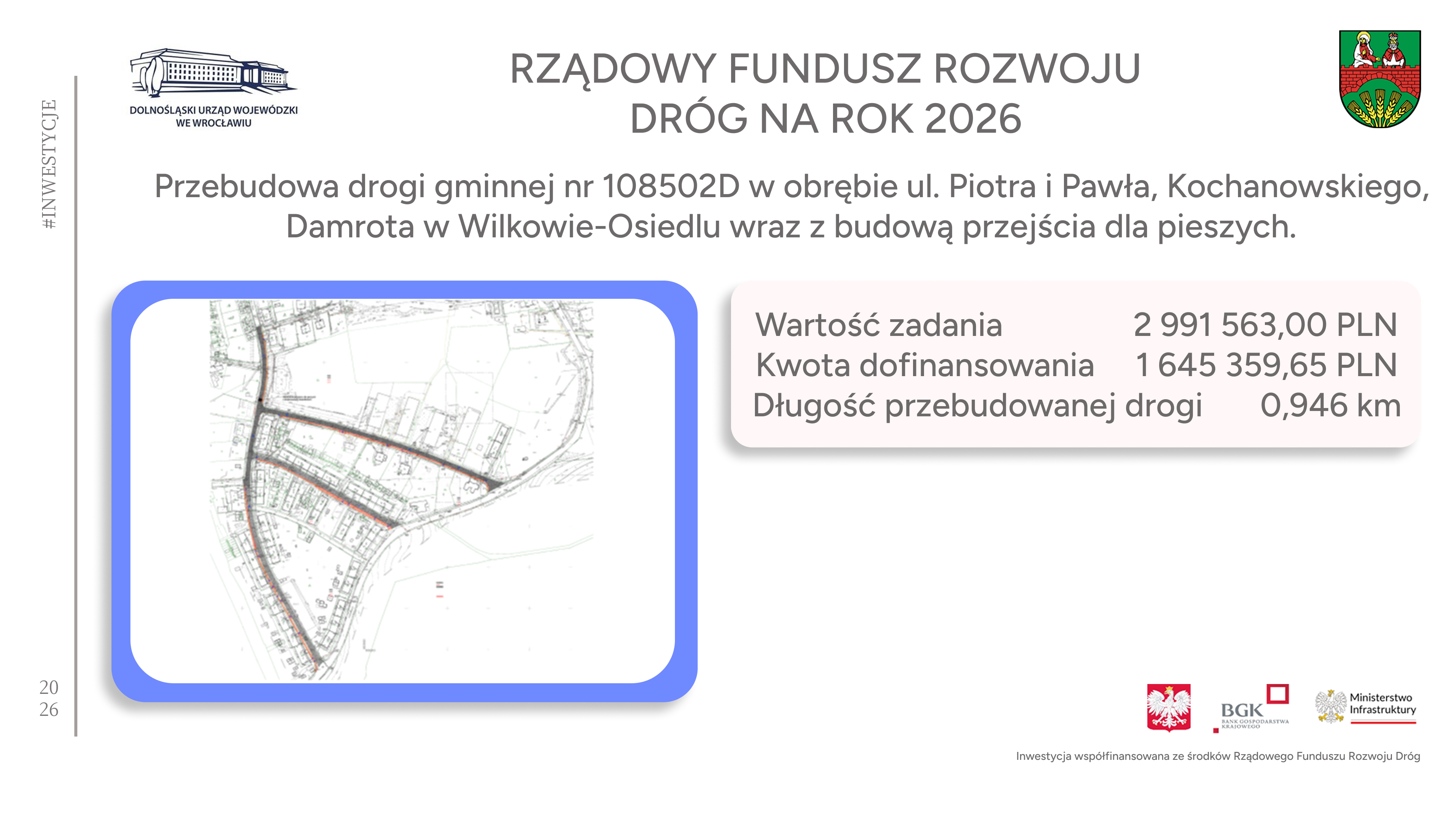 Jeszcze w tym tygodniu natomiast przetarg zamierza ogłosić Urząd Gminy Złotoryja, która otrzymała dofinansowanie do przebudowy kolejnych trzech ulic na terenie Wilkowa-Osiedla: Piotra i Pawła, Damrota i Kochanowskiego.