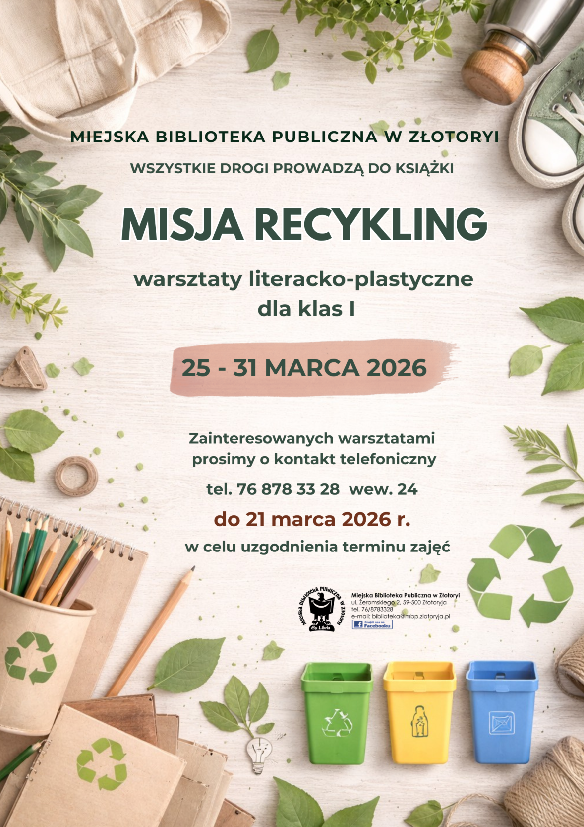 Warsztaty literacko-plastyczne pn. „Misja Recykling” organizuje dla pierwszoklasistów Miejska Biblioteka Publiczna w Złotoryi. – To świetna okazja, aby połączyć czytanie, zabawę i naukę o ekologii w inspirującej atmosferze – zachęcają panie bibliotekarki.