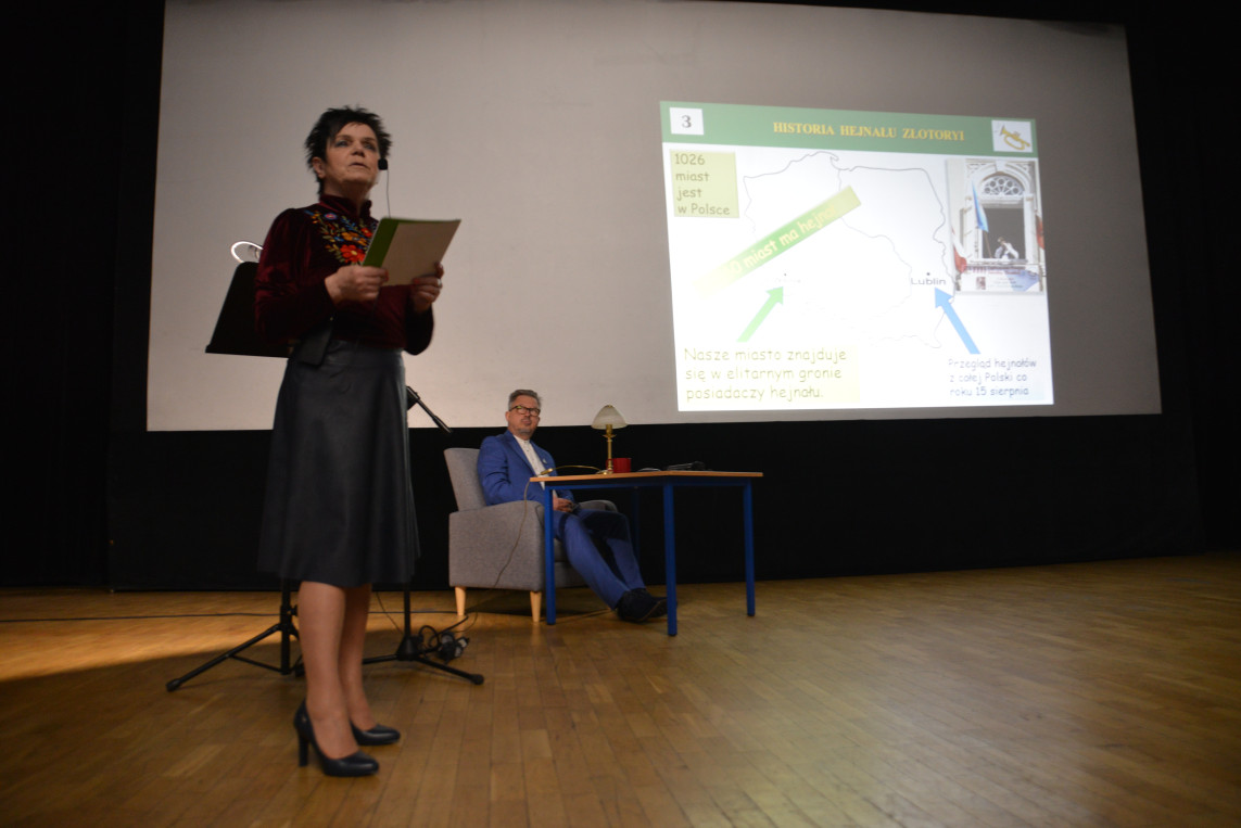 W pasjonujący sposób o hejnale Złotoryi jako symbolu lokalnej tożsamości opowiedziała Agnieszka Młyńczak, w czym pomógł jej prowadzący całe sympozjum Jarosław Jańta. Okazuje się, że Złotoryja jest w elitarnym gronie – w Polsce jest 1026 miast, a tylko 60 z nich ma swój hejnał!