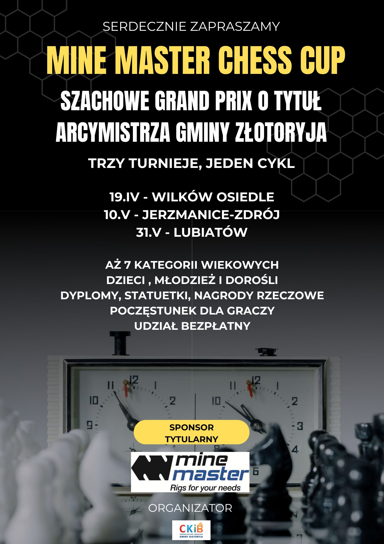 Szachowe grand prix (aktualizacja)W imieniu Centrum Kultury i Biblioteki Gminy Złotoryja zapraszamy na turniej szachowy. Patronat honorowy nad tym wydarzeniem objął wójt Jan Tymczyszyn. Udział w turnieju bezpłatny. Szczegóły TUTAJ.
