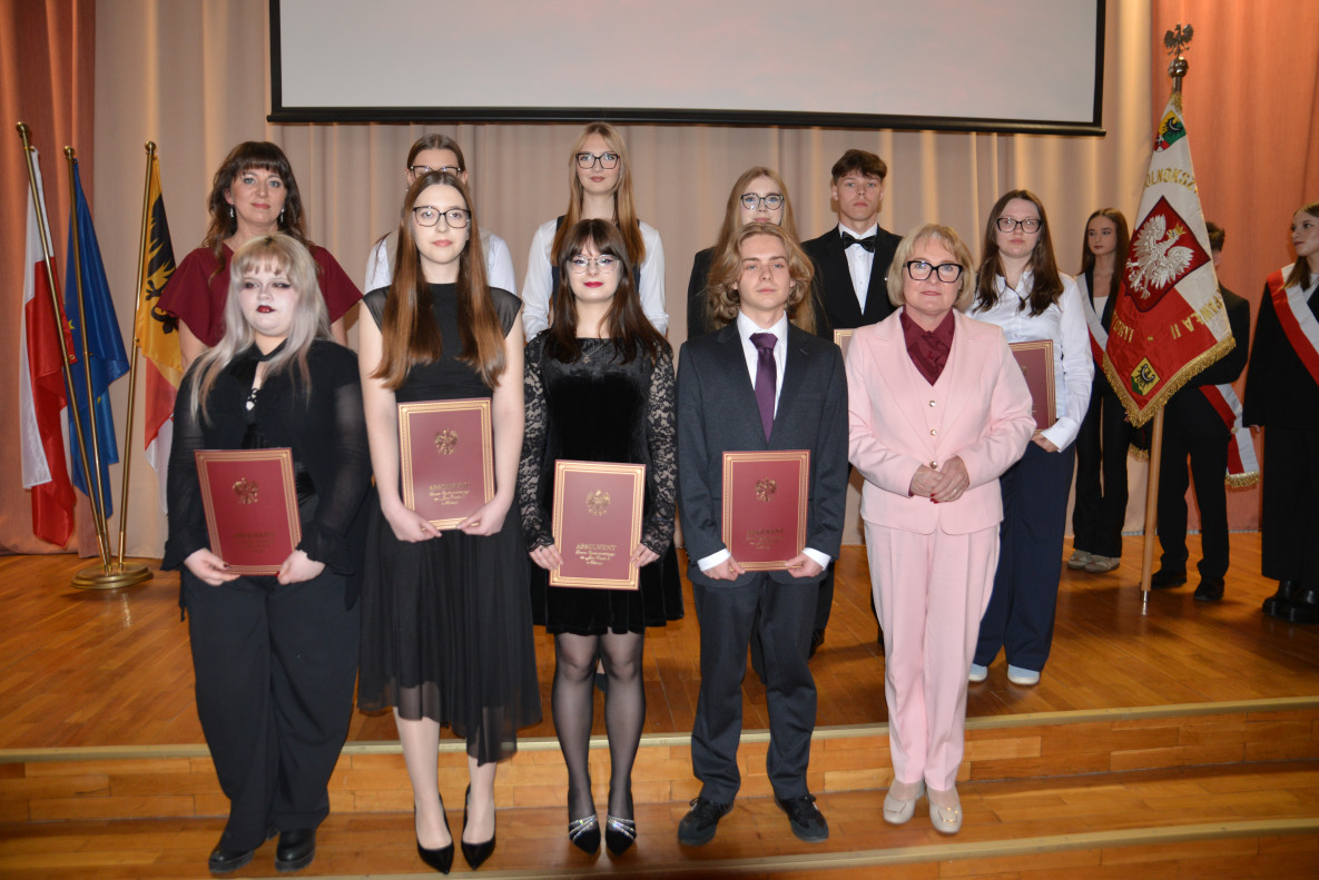 Poza świadectwami i stypendiami dla absolwentów LO przygotowano też wczoraj na inne wyróżnienia. Za inicjatywę i zaangażowanie w działalność samorządu uczniowskiego nagrody dostali: Dominik Jagucak, Joanna Niedzielska, Adam Zieliński, Adrian Sokołowski, Natalia Jaźwa, Maja Saluszewska, Aleksandra Maciejska i Maria Maas. Natomiast wśród najlepszych sportsmenek i sportowców znaleźli się: Joanna Niedzielska, Oliwia Pastyrnak, Natalia Gagatek, Anna Roś, Agata Jokiel, Paulina Wałek, Filip Bogucki, Mateusz Macała, Jakub Koczaj, Aleksander Muszyński, Adrian Sokołowski, Marcel Strojek, Mateusz Wasilewski, Krystian Rychlicki, Jakub Rębisz, Szymon Przydryga, Karol Siwak, Adam Zieliński, Filip Janczura, Mateusz Kozina oraz Jakub Kosmala.